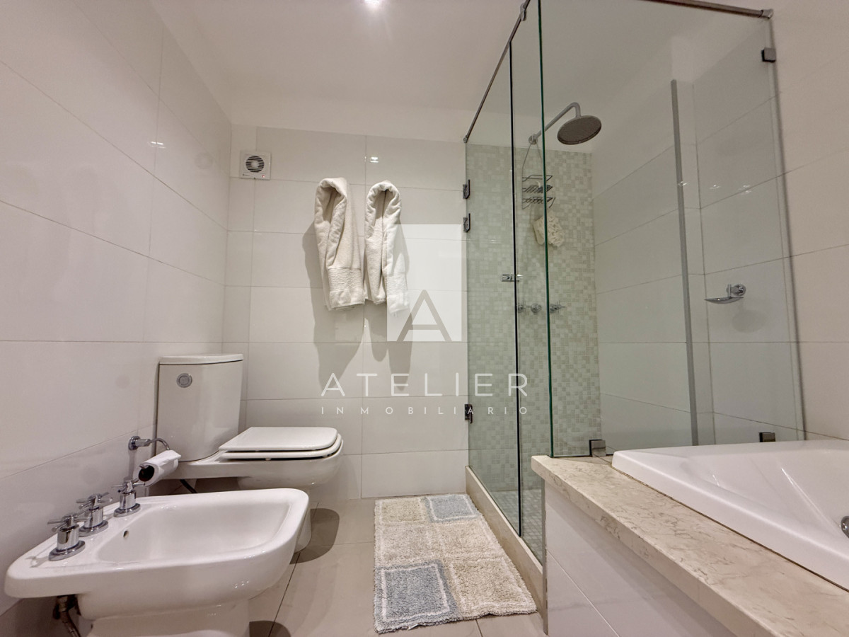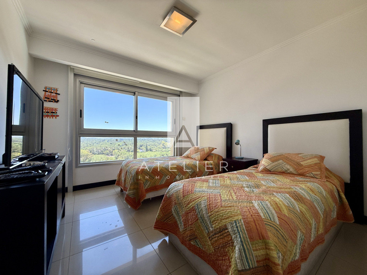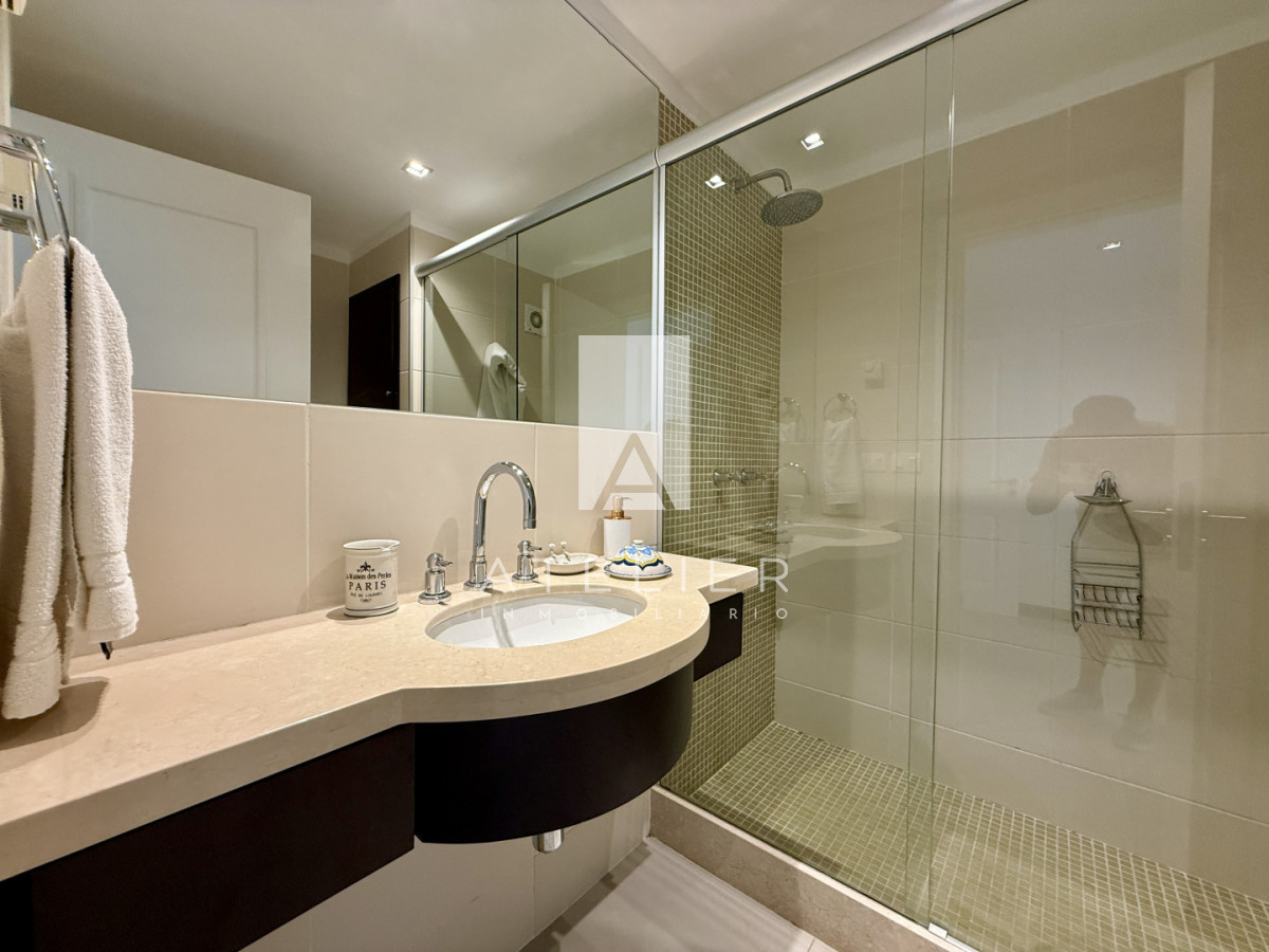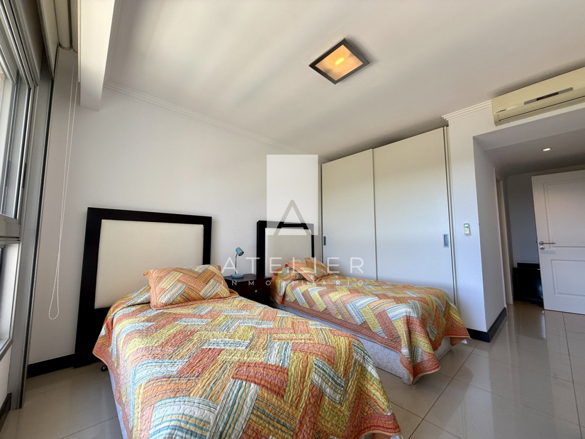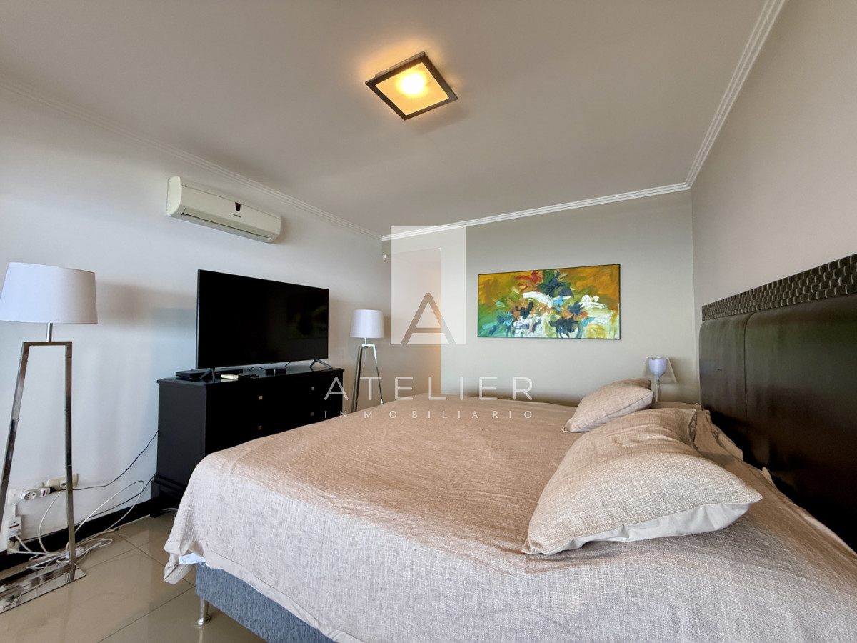 Cada uno de los 3 dormitorios cuenta con su propia suite, garantizando privacidad y comodidad para todos los residentes. Además, el apartamento ofrece servicios de mucamas y playa, asegurando que tu tiempo en este paraíso sea completamente placentero.