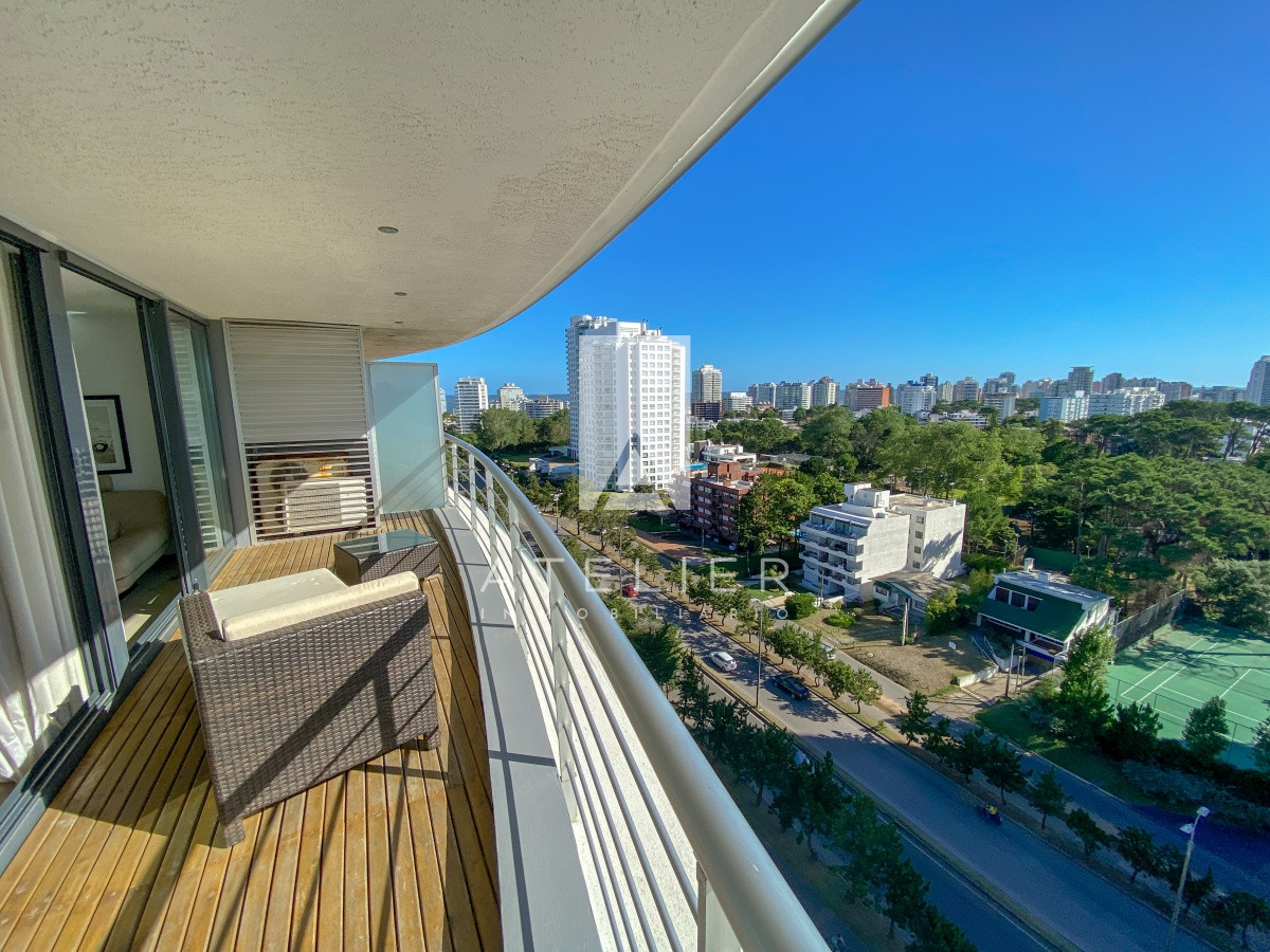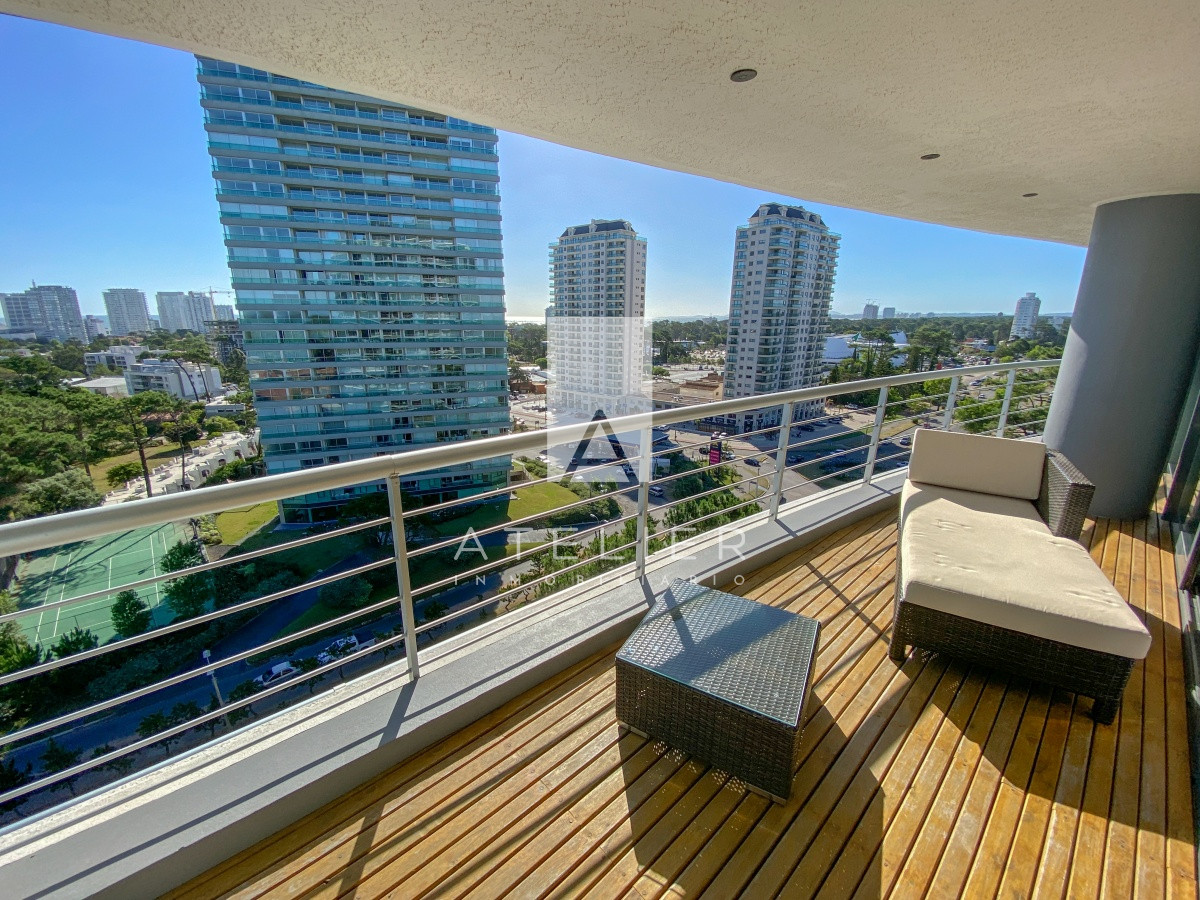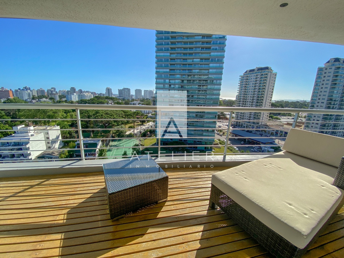 Apartamento en Roosevelt, edificio de excelente construcción y moderno diseño. Cuenta con amplio living-comedor, cocina integrada, extensa terraza. 2 dormitorios en suite (2 baños completos más toilette), principal con vestidor.
