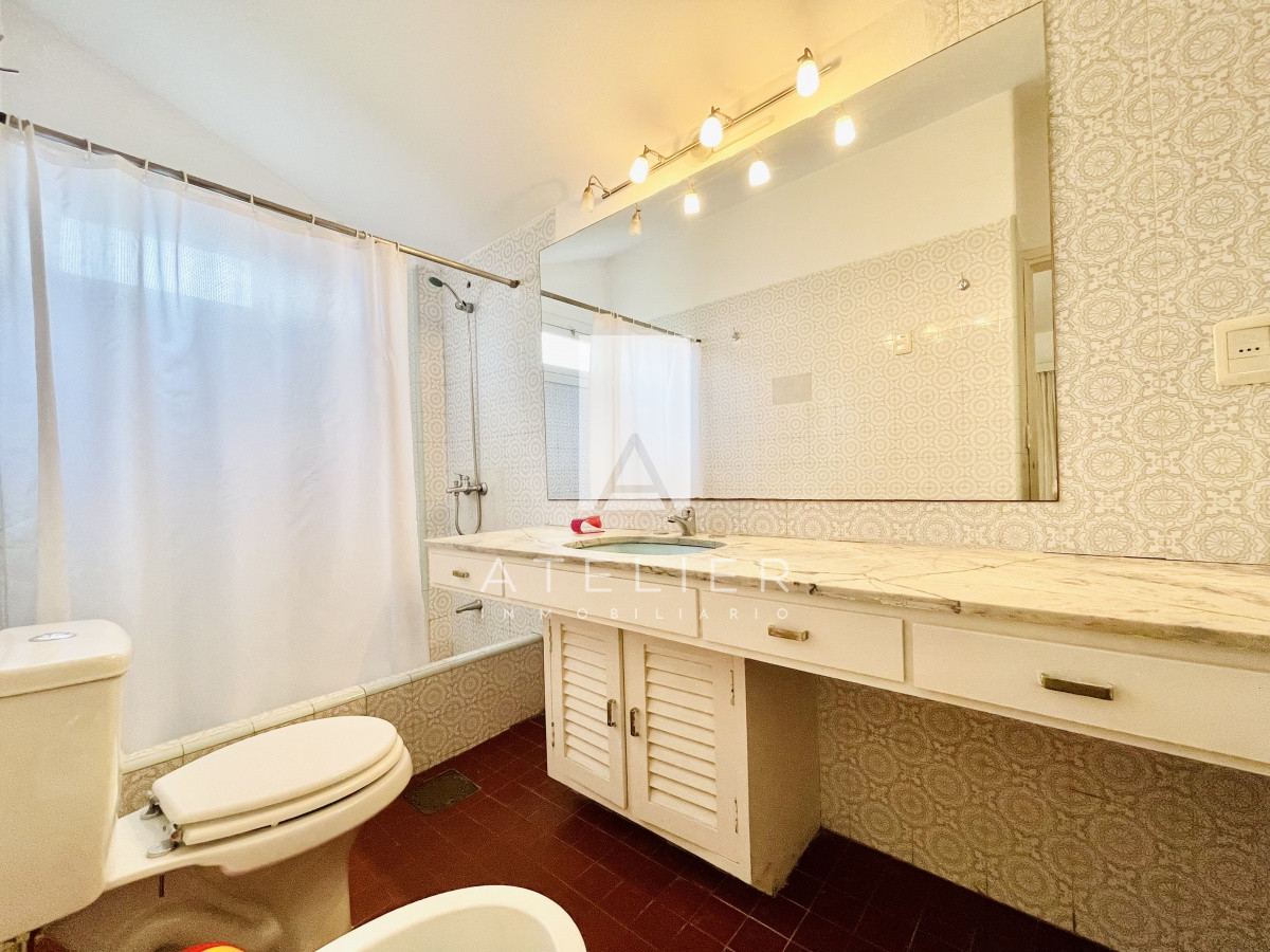 La misma cuenta con cuatro dormitorios, dos de ellos en suite, tres baños, más dependencia de servicio con baño. Amplio y luminoso living comedor con estufa a leña. Cocina definida, bien equipada-